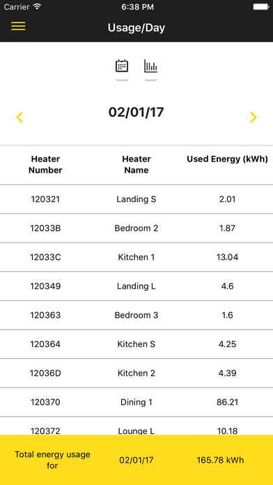 Users have the ability to see their energy usage data in a list or in graphical form in an easy to view format.